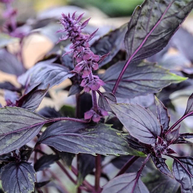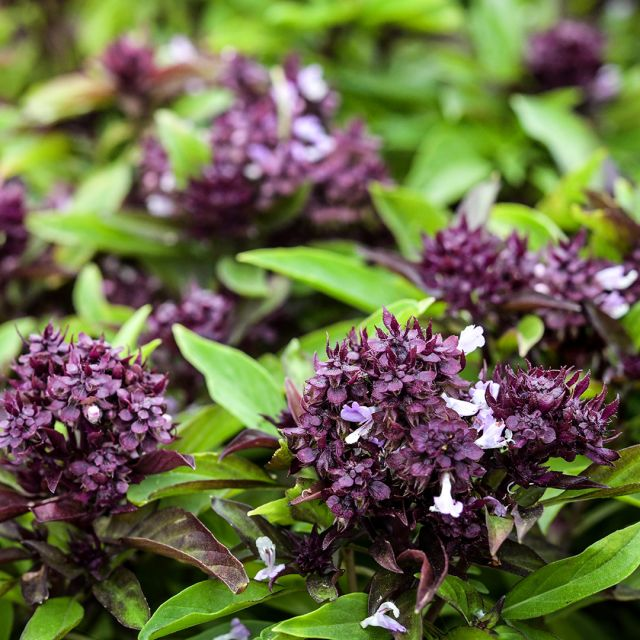 Dark Purple Opal Basil – The deep color makes this one extra flavorful, rich, and sweet. This variety was bred at the University of Connecticut in the 1950s when Professor Joseph M. Lent and his colleague John Scarchuck set out to improve the existing purple basil variety, which had inconsistent color issues. A purple-splotched variety from Turkey was selected from countless samples from across the globe. The result was this deeply purple, vigorous variety, which they named Dark Opal.