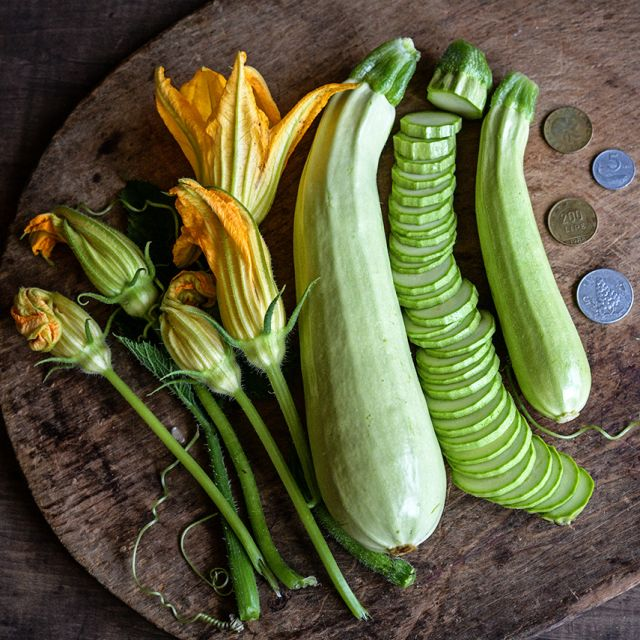 Long White of Palermo Zucchini – The famed treasure of Sicilian cooking! A gourmet traditional heirloom from Palermo, Sicily, that is highly regarded across Italian cuisine. Fruit average 12-15 inches and are a unique sage green color with faint speckles. This buttery textured variety is instrumental in a number of dishes from zucchini parmesan to salads and pastas. Charlie and I love to create tasty dishes of all kinds, playing on the nutty sweet flavor and tender texture. Wonderfully productive and flavorsome!
